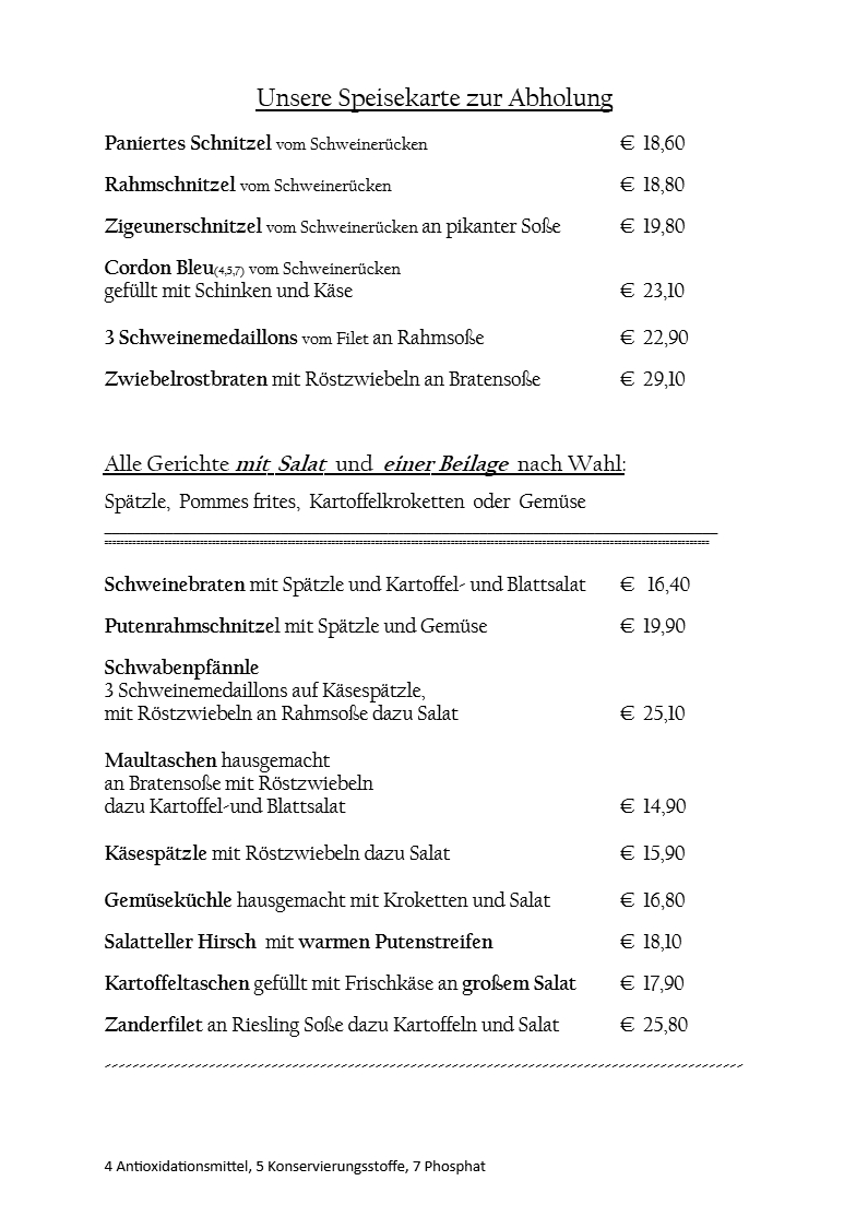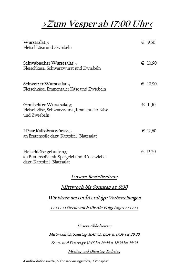 Die Karte der jeweils angebotenen Tagesessen finden Sie unter "